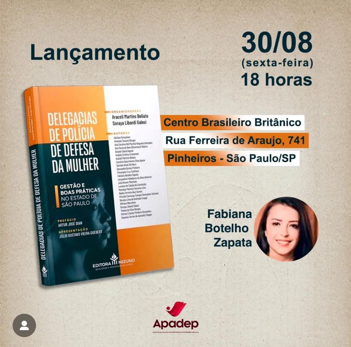 A Apadep convida associadas e associados para o lançamento do livro “Delegacias de Polícia de Defesa da Mulher”, uma obra organizada por Araceli Martins Beliato e Soraya Libardi Galesi, publicada pela Editora Mizuno, que tem a associada Fabiana Zapata entre as autoras. O lançamento ocorrerá no próximo sexta, dia 30 de agosto, às 18 horas, … Ler mais